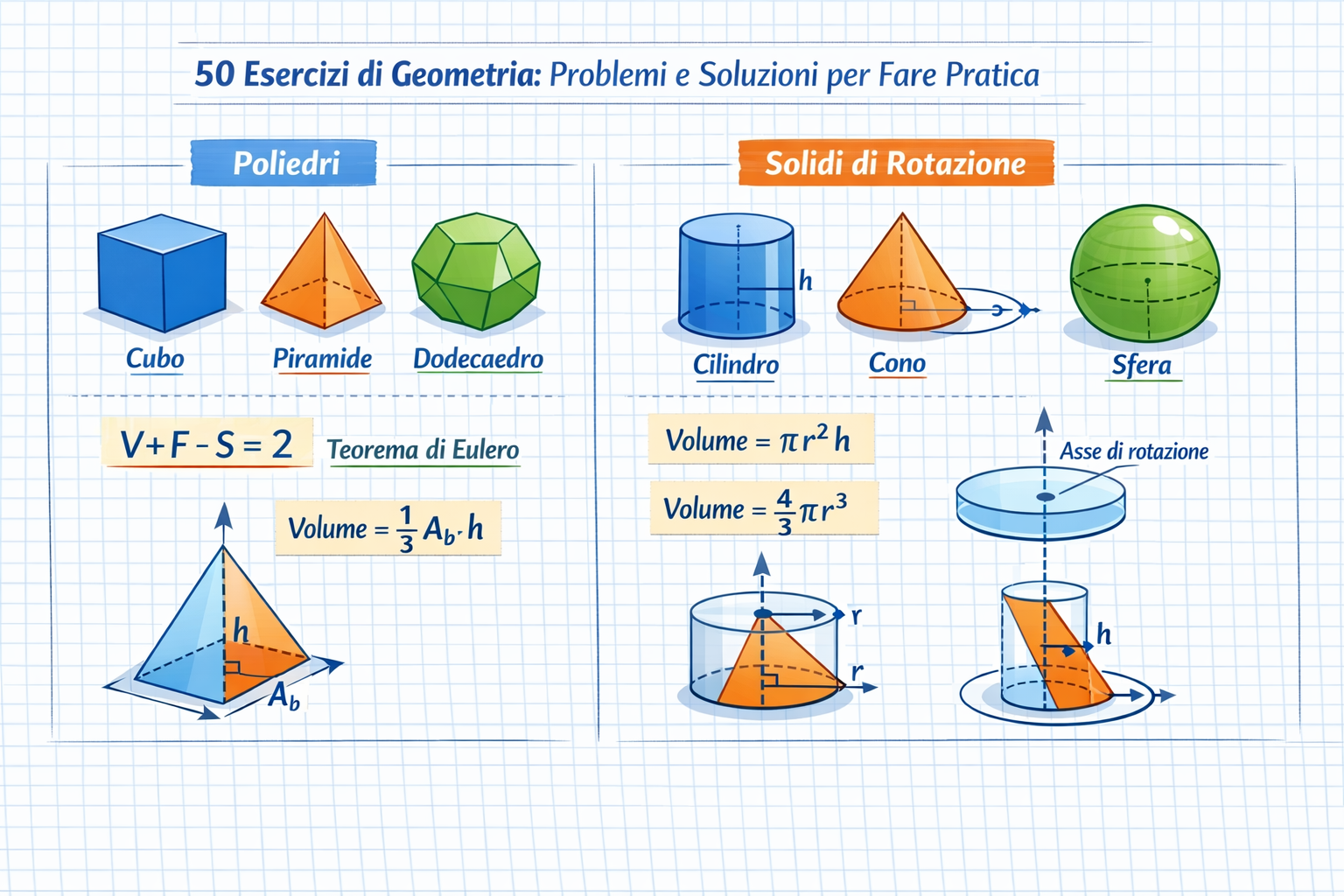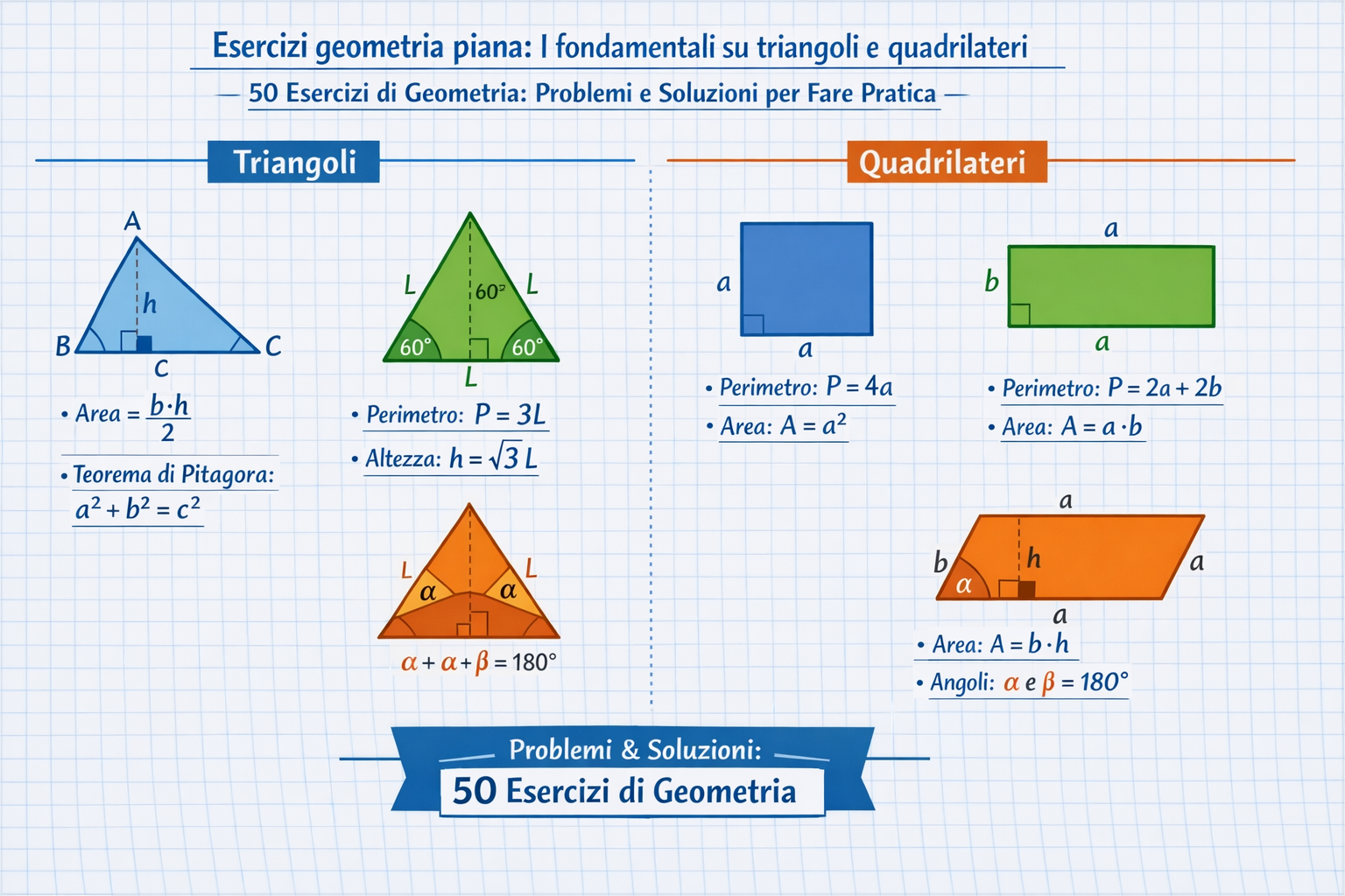 Migliora le tue competenze con la nostra selezione di 50 esercizi di geometria piana e solida. Una guida completa con problemi risolti per studenti delle medie e del liceo, ideale per il ripasso.