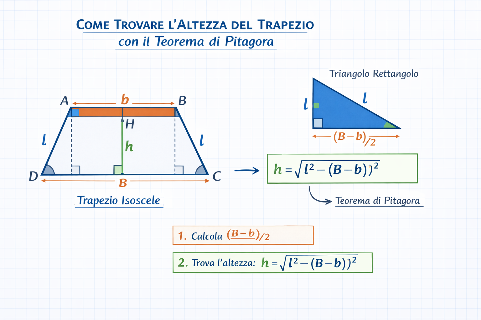 Come trovare l'altezza del trapezio con il Teorema di Pitagora